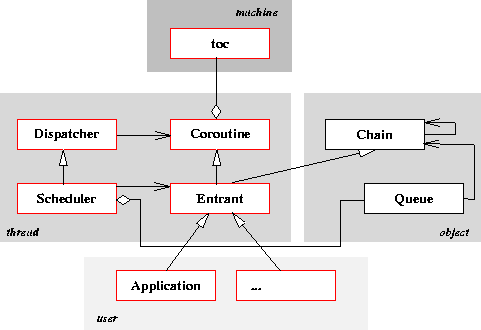 Dazu müssen einige Funktionen zum Zugriff auf die Struktur toc, die Klassen Coroutine, Dispatcher, Entrant und Scheduler, sowie die Funktion