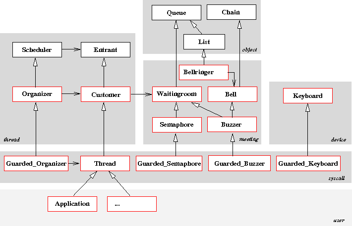 Hierzu müssen die Klassen Waitingroom, Semaphore, Customer, Organizer, Bell, Bellringer, Buzzer, Guarded_Buzzer, Guarded_Organizer, Guarded_Semaphore und Guarded_Keyboard